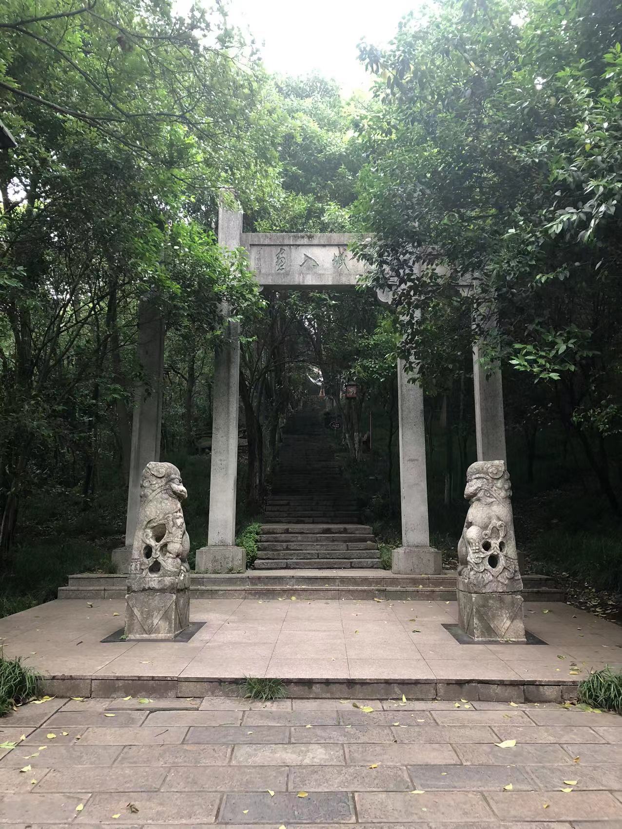 走到另一座山脚下,抬头望去弯弯曲曲,而且路很陡。有石砖楼梯,但是觉得可能走起来很累。因此选择走柏油路,柏油路似乎只能到达山腰,走到一座好像是“太白亭”的亭座,开始走上山的土路。走了不大一会就到山顶了,地图上说是刘希平先生墓。但是我在山顶上却没有看到任何的长江的影子。在山上把菠萝啤一饮而尽,准备下山。下山我们选择的是走西南方向的一条石砖路,在这里还看到了一块牌坊(应该是吧?)。回去的路上买了袋茶叶,然后开始酝酿着去看长江了。