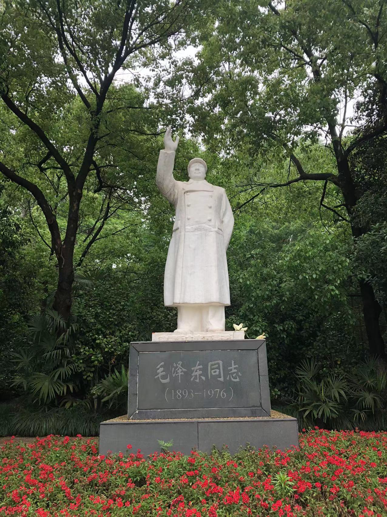 顺着九华中路我们来到了赭山公园门口。进门直接直走,因为听说可以经过山顶看到长江,顺着中间路,走到了法治广场,看到了毛泽东同志像。本以为顺着石像后的山路可以一直通到山顶,可是盘延了许久山顶是一座电视中心,山腰处为戴安澜墓,于是我们只能灰溜溜下山了,向另外一个方向的山头出发。