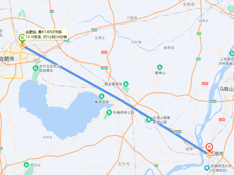 我们是从合肥站始发终到芜湖站,再做公交车到镜湖。沿途经过了不少美景,如巢湖、歪山、铃子山等,这些山上都有半山腰的人家,确实让我大开眼界。